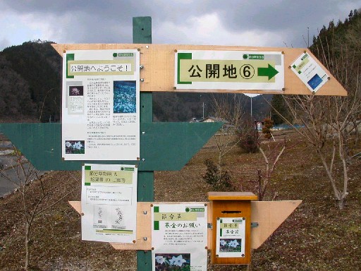 | 公開地は全部で7箇所。 民家の裏だったり神社の境内だったり様々。 公開地各所に番号が付いていて、公開時期には 分かりやすい様に立て札が立てられています。 |