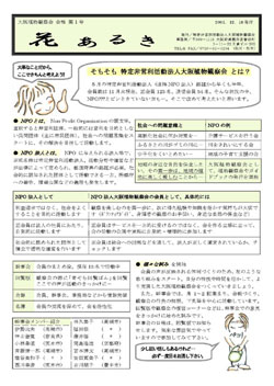 記念すべき第1号 発行/2001.12.18 P1 「特定非営利活動法人(NPO)とはなにか」という説明や、会の活動方針などについて記載しました。 少し固い話もありますが、とても重要な話だったので、会員には必ず目を通して下さいと一言を添えてお届けしました。 P2,3 「観察会をふりかえる」 行先とそこで見られた植物を写真や地図で振り返り。 西村先生の連載『花あるきコラム』。テーマは「春の七草-ナズナ」。 P4 会員からの手紙や情報、質問、事務局からのお知らせ等「花あるきニュース」として掲載。 |