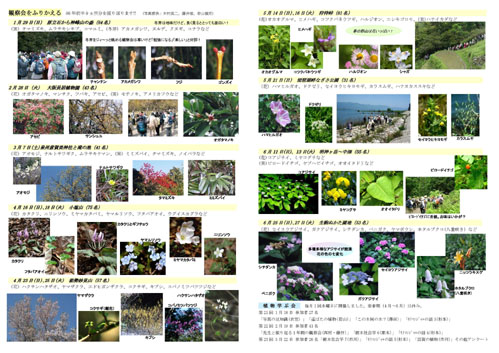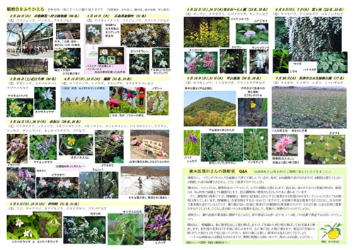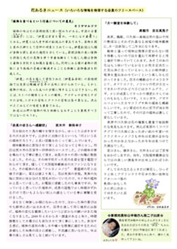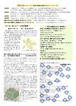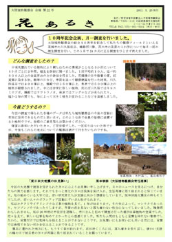 第22号 発行/2011.3.25 P1 月1調査の報告と様子、今後の展開について。 コラム「東日本大震災のお見舞い」。 P2,3 観察会を振り返る。 樹木医澤田さんの診断室Q&A「ウメの剪定」。 その他活動報告。 P4 花あるきニュース |