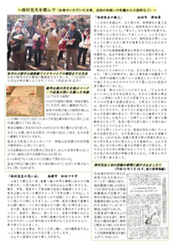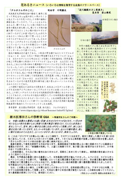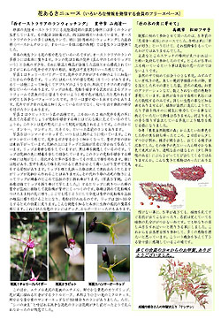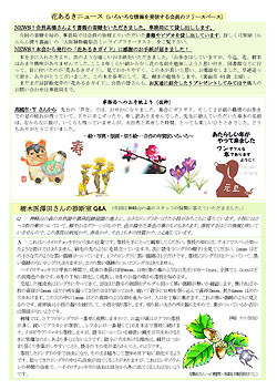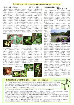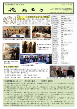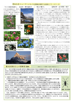 第20号 発行/2010.3.20 P1 2010年植物作品展の報告と様子 新役員体制の紹介 コラム「代表理事就任にあたって〜西村先生を偲ぶ〜」 P2,3 観察会を振り返る。 その他活動報告。 P4 花あるきニュース〜西村先生を偲んで〜 ※『樹木医澤田さんの診断室Q&A』は休載 |