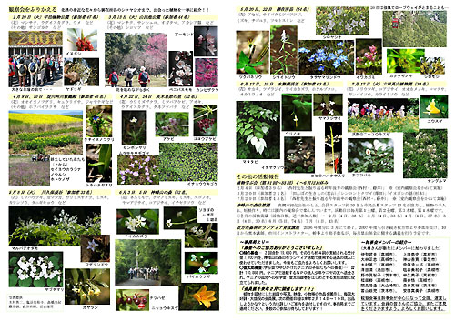 第15号 発行/2008.02.20 P1 植物作品展’08の報告と様子。 お知らせ「救急セット一式購入しました!」。 P2,3 観察会をふりかえる。 西村先生の『花あるきコラム』。テーマ「春の七草−ホトケノザ」。 その他の活動報告。 P4 花あるきニュース。 樹木医澤田さんの診断室Q&A「ユズ」。 |