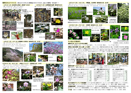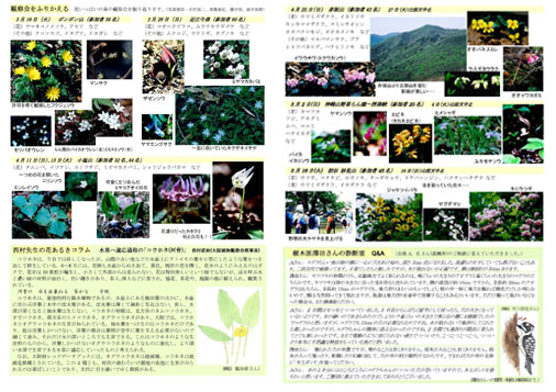 第13号 発行/2007.02.20 P1 神峰山の森ボランティア活動について。 西村先生の『花あるきコラム』。テーマ「ニリンソウ」。 P2,3 観察会をふりかえる。 樹木医澤田さんの診断室Q&A「」。 P4 花あるきニュース。 |