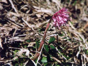 「カタクリ、オオバキスミレ、ザゼンソウとショウジョウバカマを一緒に楽しんできたよ!」と言えば 「うっそー!いつの話?」と思うかい? それもその筈、大阪近辺でカタクリといえば4月中には終わっているだろうから。 梅雨前線が北上し、関西でも梅雨入りしそうな予報で急遽日程を早め、6月5日岐阜、福井県境の 能郷白山(1617m)に登ってきた。 目的は雪渓の切れ間に咲くカタクリ、オオバキスミレ、ザゼンソウである。 登山口には土石流をならしたような駐車スペースがあり、どこでも見られるウツギが両側に満開である。 時期が早いのかノリウツギは蕾が少し見える程度。 標高差1000mの急登の連続は少々きついが植物を楽しみながら登ることにしよう。 |