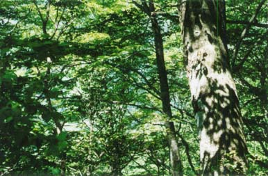| 樹木を同定するのに木肌の見極めも大きな要素であるが、樹齢、地域などによっても色々変化するようでやっかいだ。 いまだにコナラとミズナラの同定に迷ってしまう。 交雑が頻繁に起こっているようだが、葉っぱを見ると柄がなく基部が耳たぶ状なのでミズナラである。 林床にはモミジコウモリとその種類が時々見られる。 |